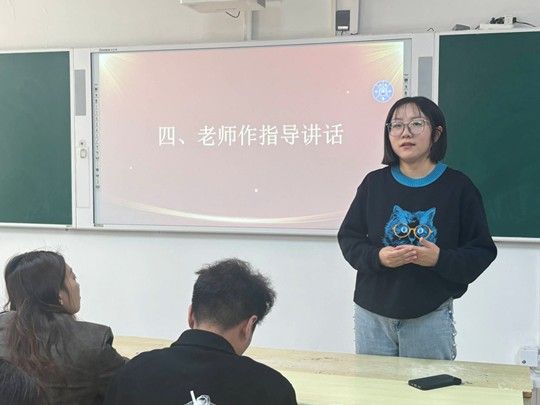 最后,三位辅导员结合各自分管工作依次作针对性指导发言。刘欣欣老师作整体总结,肯定全体学生干部的付出与担当,叮嘱大家平衡学业与工作、强化沟通协作、及时上报问题,并对新媒体中心、学生会文艺部和体育部提出要求,强调提升宣传质效、打造精品文体活动、增强集体凝聚力。吴昊老师对自律会卫生部、学生会学习部、青年志愿者协会的工作作出指导,希望同学们全力配合做好资助相关辅助工作,严把综测核算环节细节,同时创新读书活动开展形式,推动志愿活动进一步拓展服务阵地、打造特色品牌。高晨轩老师强调纪检部要常态化、标准化开展课堂检查,宿管部要抓实就寝管理、规范宿舍工作并开展特色宿舍文化活动。