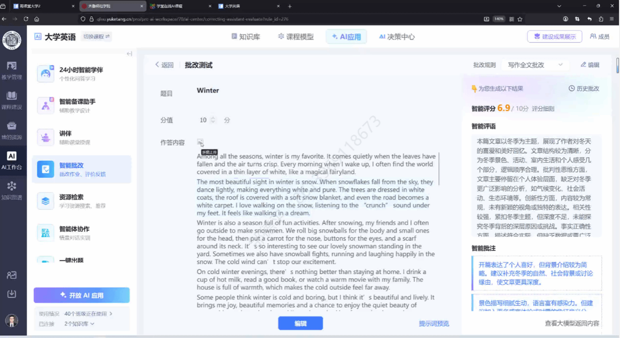 通过本次培训,参训教师对人工智能支持下的课程建设理念、教学模式与评价方式有了更加系统的理解。yl6809永利官网集团将以此次培训为契机,持续推进智慧课程建设与教学改革实践,推动人工智能技术在外语教学中的常态化、深度化应用,不断提升课堂教学质量与人才培养成效。