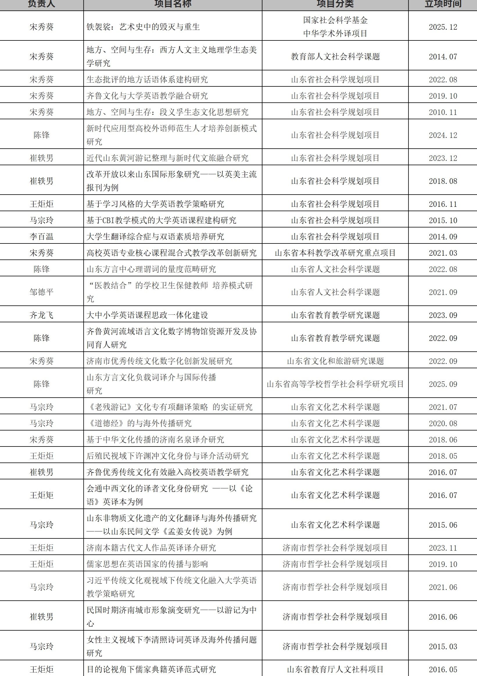 现有成员16人,其中教授1人,副教授5人,博士7人,硕士生导师3人,山东省教学名师1人。近年来,团队先后承担包括国家社科基金项目在内的省级以上人文社科项目各类项目20余项,出版相关研究专著、译著20余部,发表SSCI、A&HCI、CSSCI、SCI、EI以及中文核心等高水平论文20余篇。