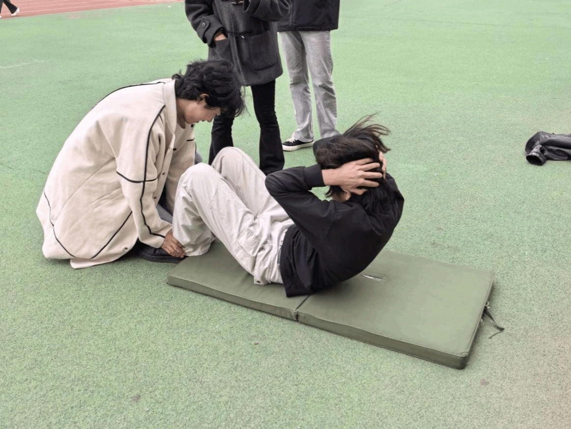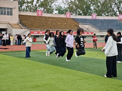 赛场上,各项赛事精彩纷呈、气氛热烈。团体项目中,同学们同心协力、默契配合:集体跳大绳节奏连贯,展现同心同向的凝聚力;六人七足步伐整齐,诠释携手共进的协作精神;4×50米接力奔跑冲刺,彰显朝气蓬勃的青春速度。个人项目同样亮点频现:长跑健儿坚韧不拔,诠释永不言弃的体育品格;仰卧起坐与引体向上比拼中,同学们突破自我、尽显力量与风采,充分展现外院学子的朝气与活力。