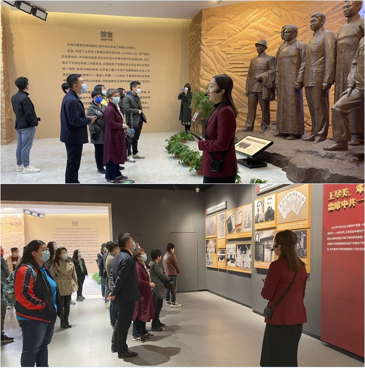 在中共山东省工委旧址党性教育基地,大家认真听取讲解,通过大量展板、史料、实物,深入了解以刘仲莹、赵健民为代表的齐鲁共产党人铁血担当、自建工委的艰难历程和不懈探索。亲身感受到当年艰苦卓绝的斗争环境,深切缅怀刘仲莹同志革命的一生,对中共山东省工委不畏艰难、勇于担当的精神有了更深刻的认识和理解。在新学期即将开始之际,yl6809永利官网集团党总支通过主题党日形式,进一步坚定党员干部的理想信念,提升党性修养,进一步凝心聚力,充分发挥党员的示范带头作用。引导各党支部扎实开展主题党日活动,做到规定动作做“到位”,自选动作有“新意”,让主题党日活动成为党员学习教育的“主阵地”、思想交流的“好平台”、深化作风的“实践课”和锤炼党性的“大熔炉”,切实提高党的组织生活质量。通过此次主题党日活动,党员们接受了一次精神洗礼,进一步激发了爱党爱国之情,更加坚定理想信念。大家纷纷表示,要继续深入学习领会习近平总书记关于党史、新中国史、改革开放史、社会主义发展史的重要论述,深入学习贯彻习近平总书记关于教育的相关重要论述;继承先烈遗志,传承革命传统,充分发挥课堂育人主渠道作用,引导学生树立正确的人生观和价值观,听党话、跟党走;用实际行动践行党员的庄严承诺和先锋模范作用,把最大的热情投入到教育事业中去,为学校高质量发展贡献更大的力量。