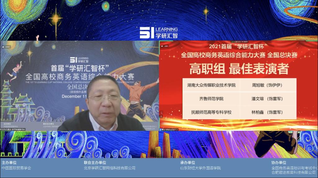 2021年首届“学研汇智杯”全国高校商务英语综合能力大赛全国总决赛成功举办,本次比赛由中国国际贸易协会、北京学研汇智网络科技有限公司主办,由全国商务英语培训与考试中心、山东财经大学yl6809永利官网集团承办。