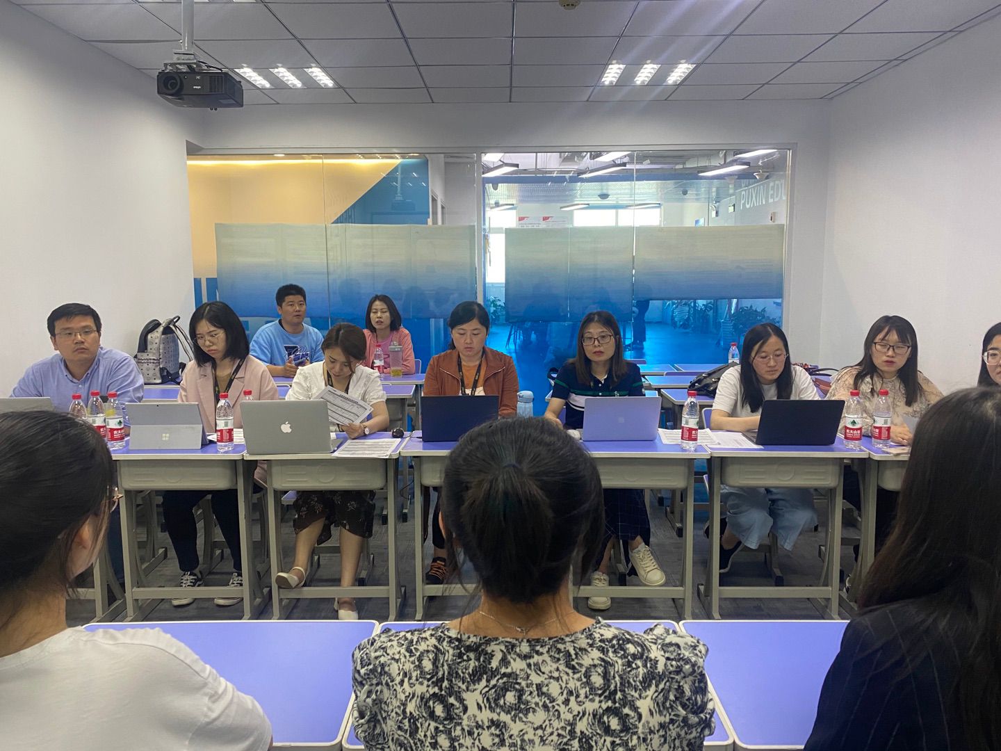 到达参观校区后,朴新教育负责人热情接待我院师生,带领我院学生参观校区环境设施,感受校区文化氛围,并走进教室了解课堂模式与上课环境。校区内部成员分工明确,倪老师与各部门负责人面对面沟通交谈,帮助学生进一步了解“个性化课堂”。校区一对一教育体系成熟,授课模式高效。接着,朴新教育老师进一步向老师和学生们全面系统的介绍企业背景、现状以及远景目标。我院学生被深深吸引,表现出浓厚的兴趣与求职意向。