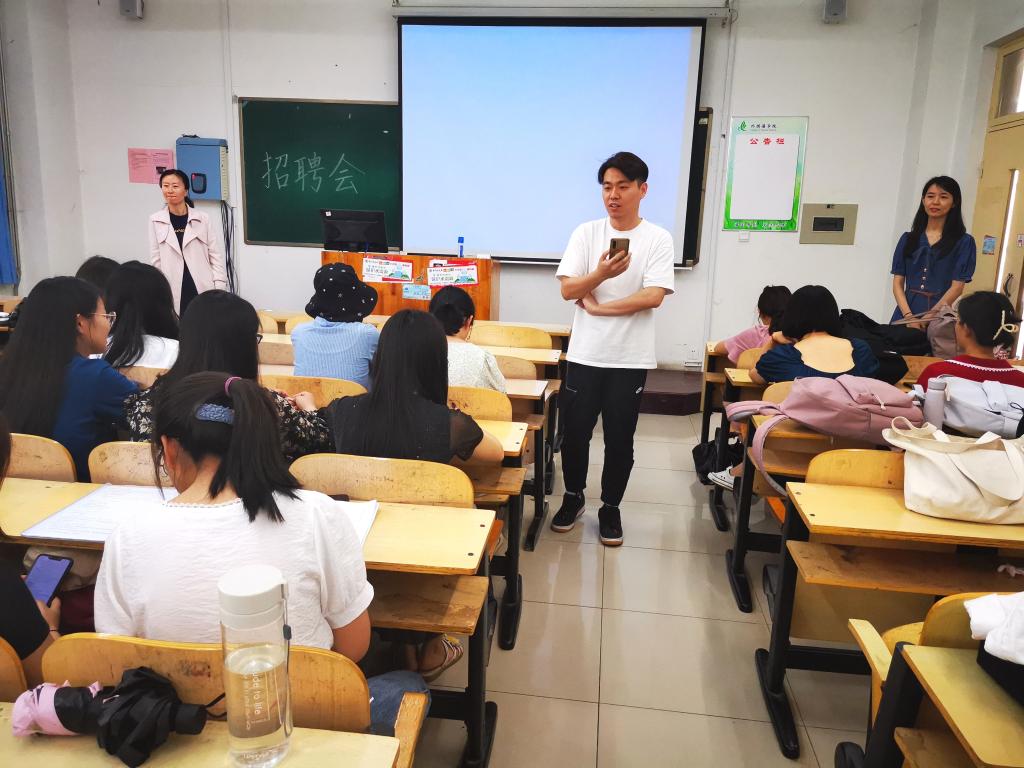 yl6809永利官网集团于5月27日上午10:30,在一号教学楼A106教室组织济南瓜瓜龙启蒙教育专场招聘宣讲会。参会人员有yl6809永利官网集团团总支书记牛荦、团总支副书记孙海燕、济南瓜瓜龙启蒙教育负责人以及2021届毕业生。