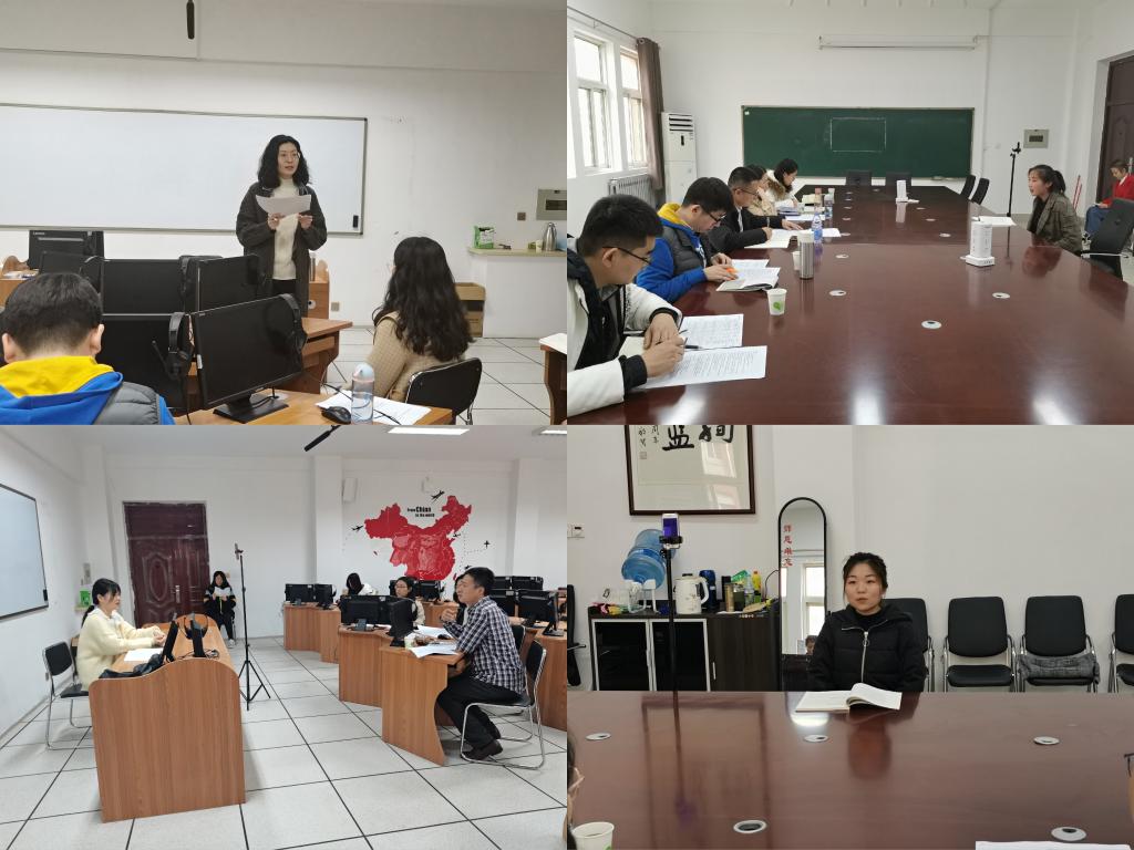 此次考研模拟复试分成两组,分别由李百温院长、林德奖老师担任组长,其中一组六位考官,二组五位考官,模拟现场严格仿照招收研究生高校的复试场景设计,考生在B208办公室候考,并按前期抽签顺序依次入场。复试流程参照各学校复试的面试环节要求分为三大环节:首先,考生进行3分钟的英文自我介绍;接着,面试考官围绕教学法、教育问题等展开结构化提问,并根据个别考生复试学校的特殊要求增设视译、听译考察环节;随后,考官们就考生表现情况予以针对性点评,鼓励学生用心备战、自信复试。