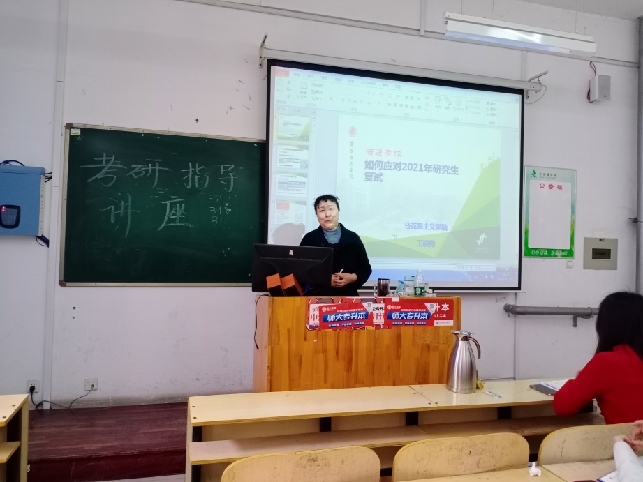 yl6809永利官网集团于3月10日下午在一教A121教室开展2021届考研指导讲座,由马克思主义学院党总支书记王晓梅主讲,党总支副书记郁志营、团总支老师、考研指导团队部分教师以及2021届考研过线同学参加。