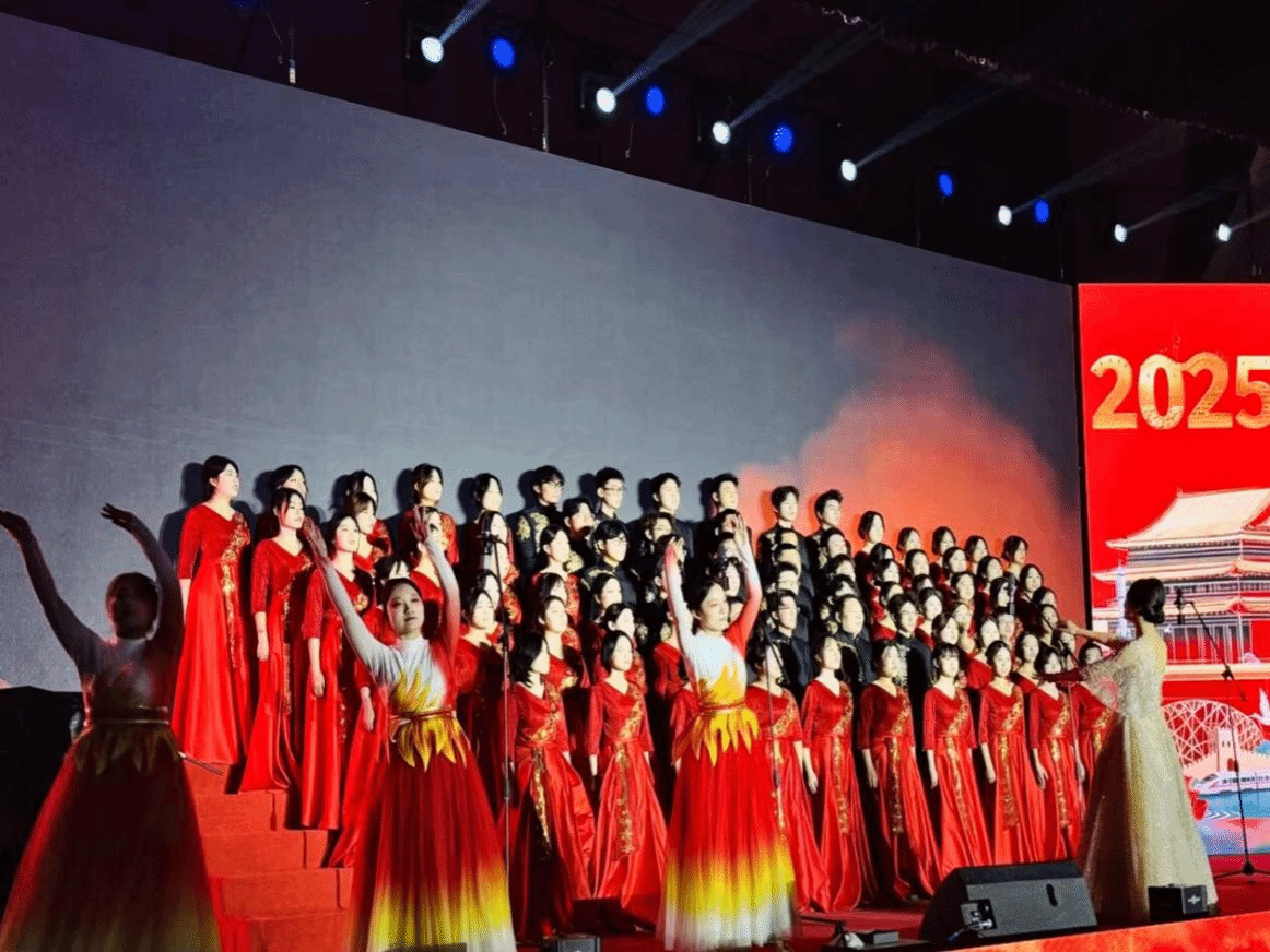 为深入践行立德树人根本任务,推动美育与思政教育深度融合,厚植青年学子的爱国情怀,强化其时代担当,12月3日晚,yl6809永利官网集团积极响应学校号召,组织 90 余名师生代表参加美育思政大讲堂 “为祖国歌唱”大学生合唱节活动。师生们齐聚舞台,以嘹亮歌声传递坚定信仰,用激昂旋律凝聚奋进力量,深情抒发对祖国母亲的无限热爱与美好祝福。