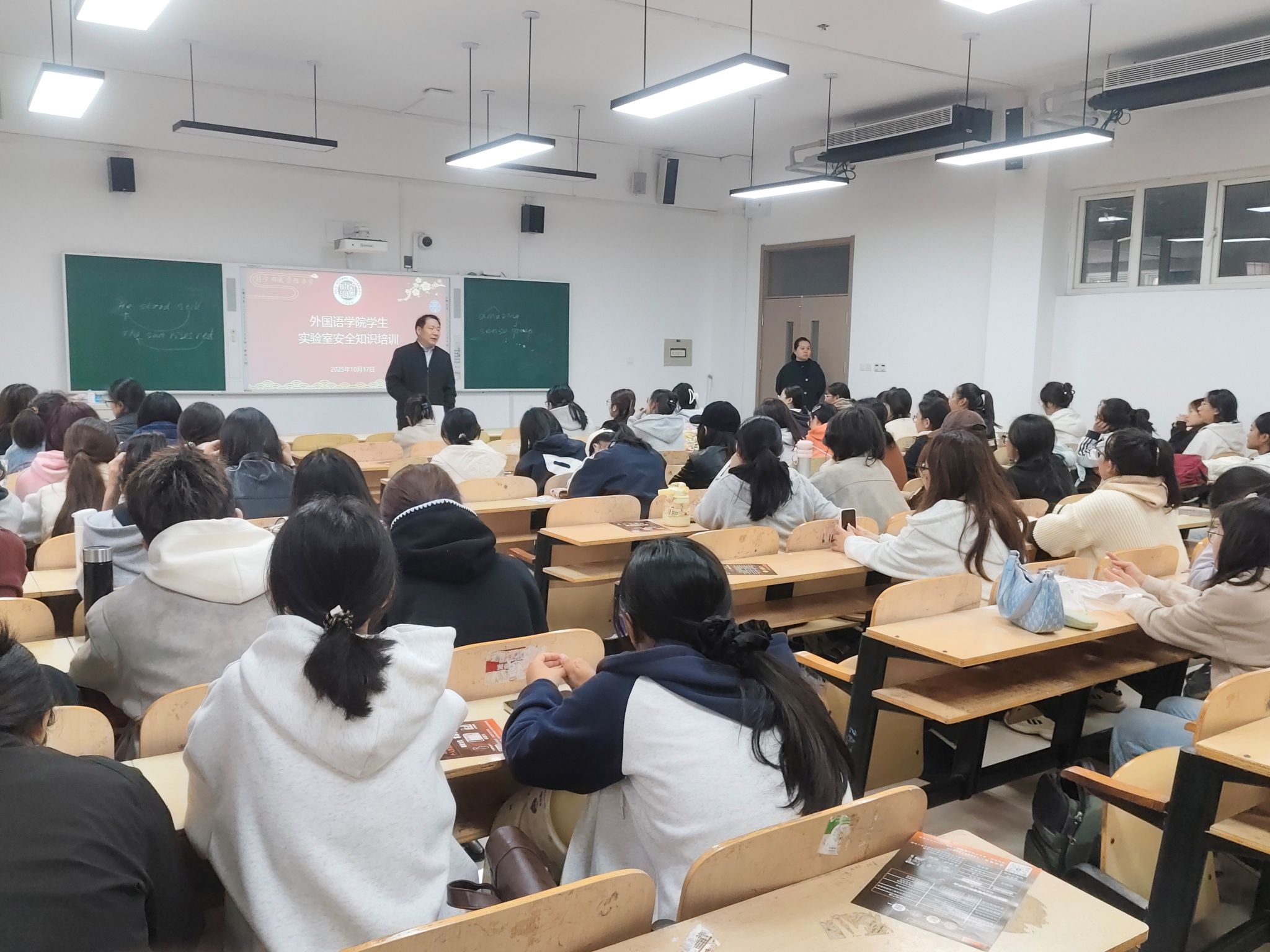 培训伊始,谢士金强调了实训室安全对于教学开展、师生安全的重要意义,结合高校外语类实训室常见安全事故案例,剖析了用电、设备操作、消防安全等方面的潜在隐患,明确“安全第一、预防为主、规范操作、责任到人”的实训安全准则,要求全体参训人员高度重视实训安全,将安全规范内化于心、外化于行。