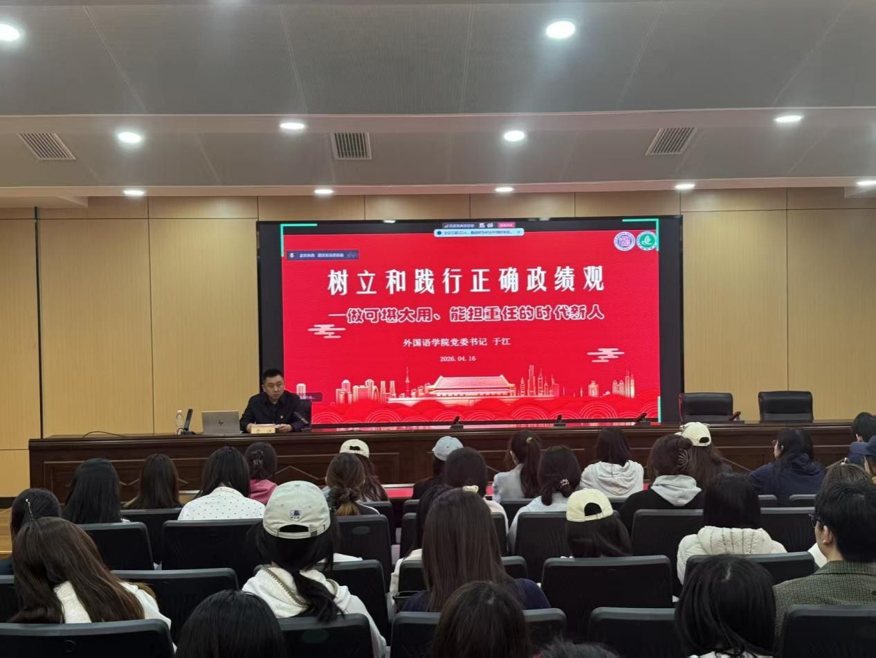 结合外语专业特点,于江书记勉励同学们争做真诚、坚定、踏实、融合的新时代青年,发挥语言优势,在服务社会、奉献国家中实现人生价值。他强调,青年学生要坚持以人民为中心,做到对党忠诚、勇于担当、求真务实、无私奉献,从入校之初就扣好政绩观“第一粒扣子”,不断提升党性修养与综合素养。
