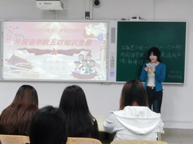 活动伊始,主持人王慧以“五四精神的时代回响”为主题,详细介绍活动背景、竞赛规则与流程,正式拉开本次知识竞赛的帷幕。竞赛紧密结合yl6809永利官网集团专业特色,创新设置外语单词速记、五四典故猜谜等趣味互动环节,将党史团史知识、五四精神内涵与外语专业素养有机融合,兼具知识性、趣味性与互动性。