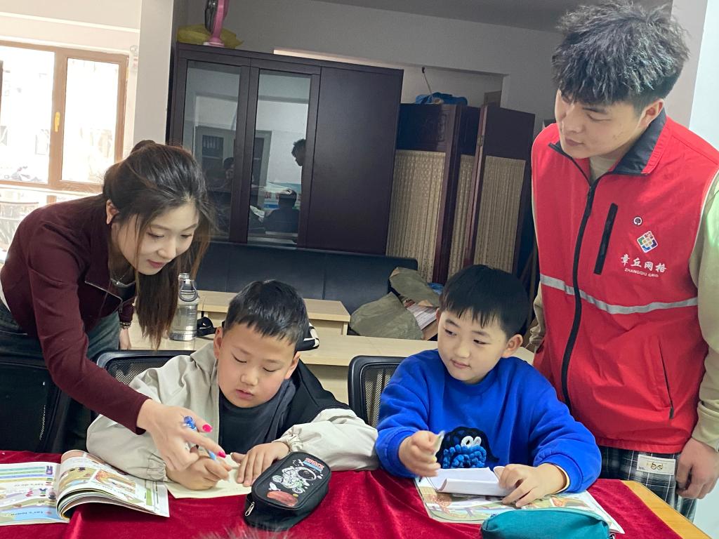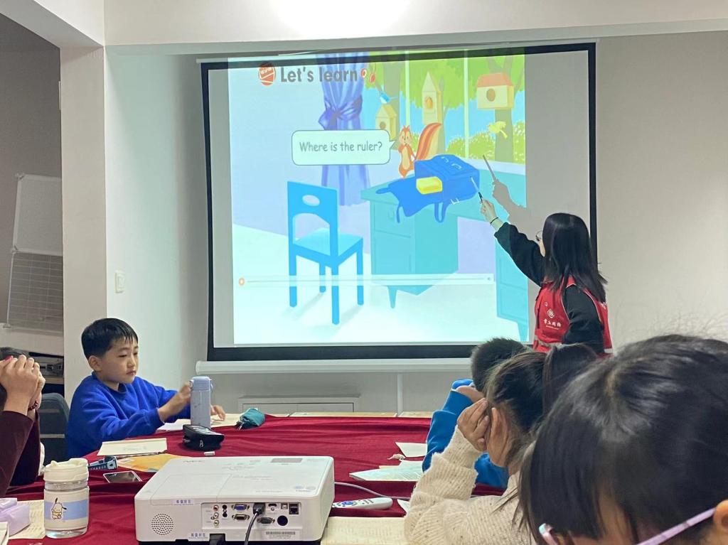 志愿者亓一帆、张凯、王梓懿、李晓晗、徐艺璇五名同学来到山水泉城社区致力于营造生动的英语教学氛围,为孩子们打造了一个充满活力和乐趣的英语课堂。