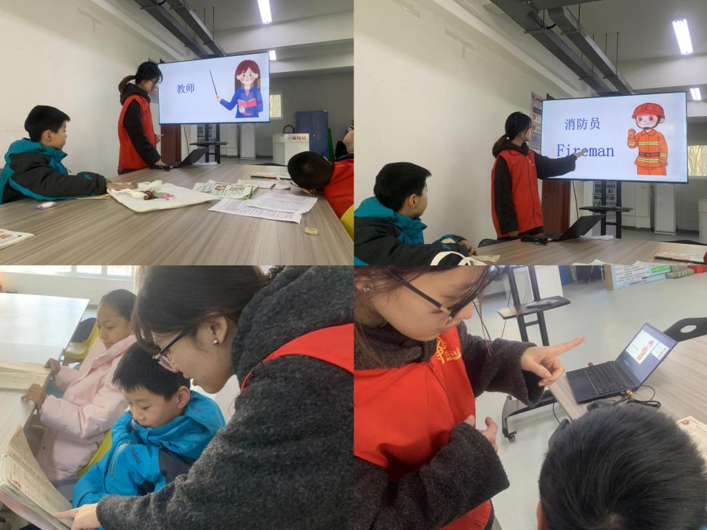 在四年级的课堂上,我们则带领着孩子们进行了一场有趣的课文朗读之旅。他们的声音声情并茂,仿佛将我们带入了一个个生动的故事之中。之后,我们进行了角色扮演游戏,每一位孩子都沉浸其中,将故事中的角色演绎的惟妙惟肖。复习完课本的内容后,我们又开展了有趣的单词猜猜乐游戏,我们给出一个首字母,让孩子们说出想到的单词。当第一个首字母“D”出现时,同学们的热情瞬间被点燃,各种各样的单词不断涌现:“Doctor、Dad、Daughter、Driver”等等。
