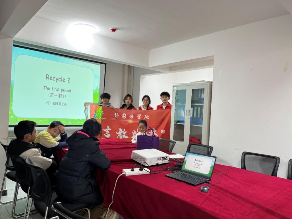 这个周末,我们带着知识的火种,奔赴一场与社区四年级孩子们的温暖之约,用青春的活力与无私的爱心,为孩子们平淡的周末时光勾勒出绚丽的色彩,并开启一扇通往英语世界的奇幻大门。随着孩子们陆续到齐,一场别开生面的知识探索之旅精彩即将上演。上课铃响起,我们开启了第一单元的复习环节。通过引导孩子们逐词逐句地梳理那些重难点单词,从精准的拼读、丰富的释义,再到实用的例句拓展,全方位的加深孩子们的理解;课文部分,更是带着孩子们从朗读的节奏把握、语调的抑扬顿挫,深入到段落主旨、写作手法的剖析,力求让每一个知识点都清晰透彻。