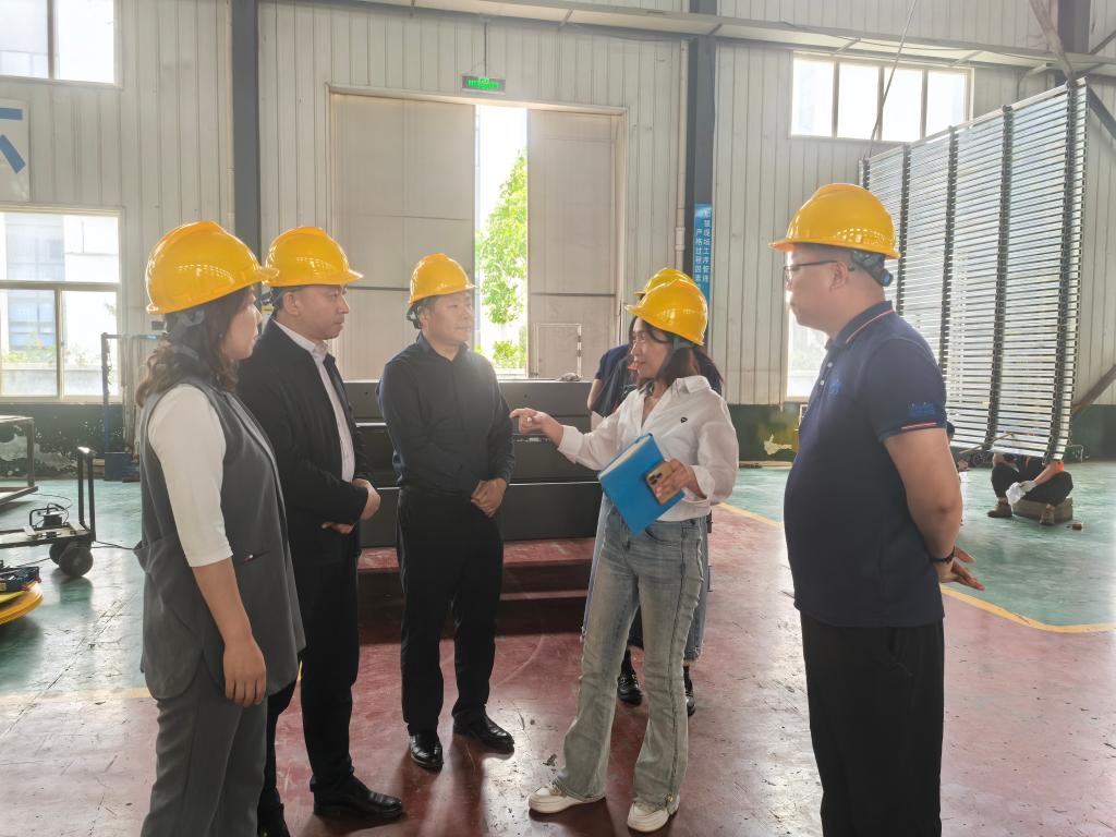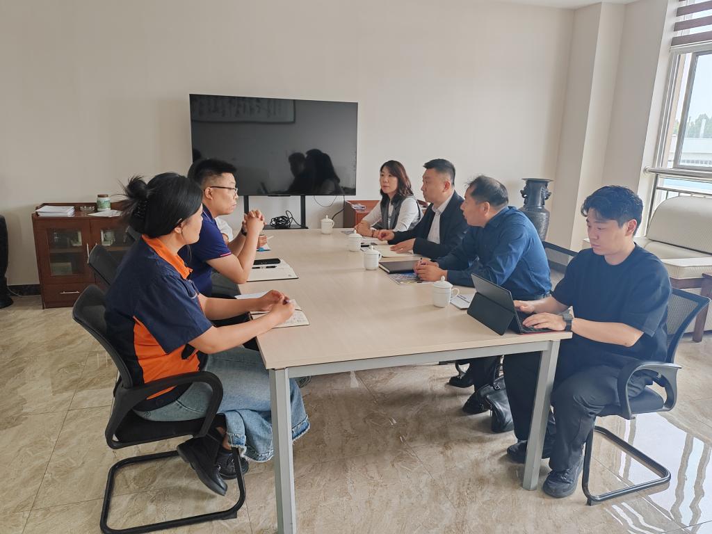 在山东深蓝机器股份有限公司,学院一行在公司负责人陪同下参观了企业厂房,了解公司发展历程、业务范围和运营模式。随后的座谈会上,总经理助理、综合管理部部长董才翔,海外市场部部长张静,人资专员师田参加了会议。董子翔对学院领导和老师的到来表示热烈欢迎,详细介绍了公司的发展现状、业务布局以及未来规划。随后,双方就人才输送、实习就业等领域展开深入探讨,为后续学生实习就业搭建桥梁。