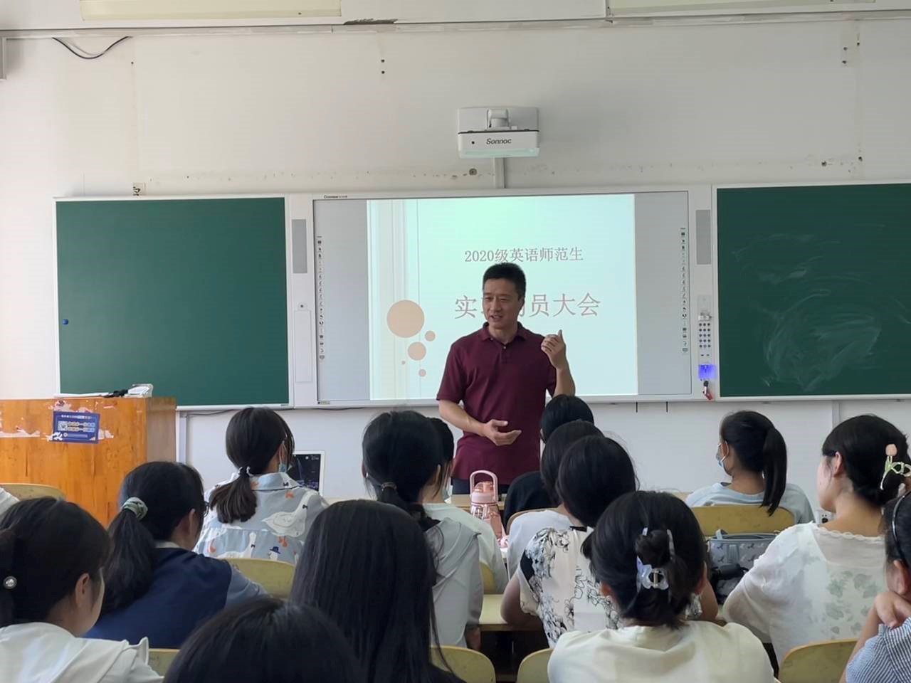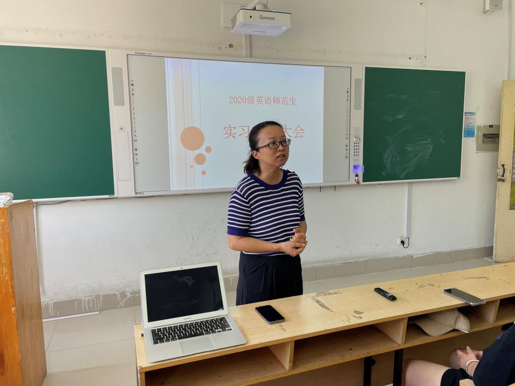 yl6809永利官网集团2020级英语师范生实习动员大会于8月23日13:00在二教B233召开,大会以线上线下相结合的方式进行。yl6809永利官网集团副院长李百温,教师张力文、董苗苗出席会议,2020级英语(师范类)1班、英语(省属公费师范生)1班参会。