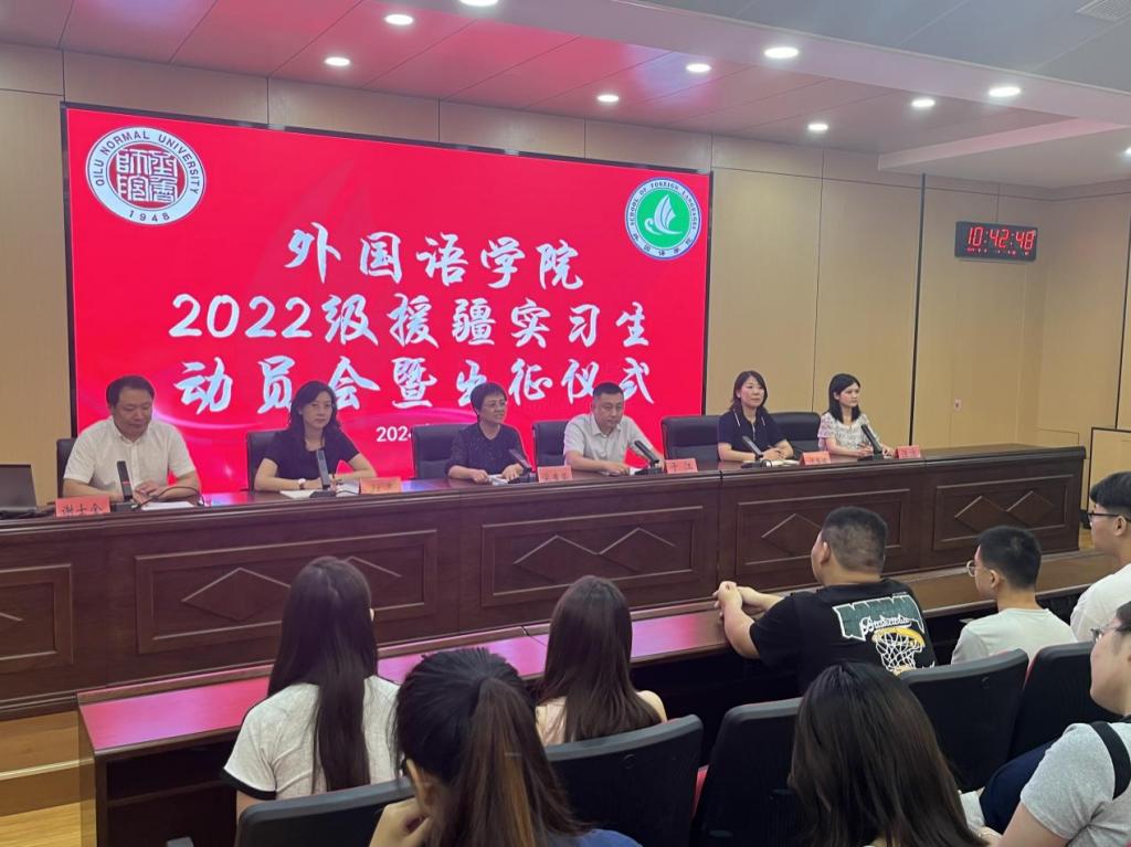 9月2日上午,yl6809永利官网集团在学校第二报告厅举行2022级师范专业援疆实习生动员会暨出征仪式。会议由副院长谢士金主持,yl6809永利官网集团院长宋秀葵、党委书记于江、党委副书记迟英娟、带队教师汪洁以及共50名赴疆实习支教的同学出席会议,本次会议特别邀请到信息科学与技术学院党委书记、赴疆实习支教领队赵青出席。