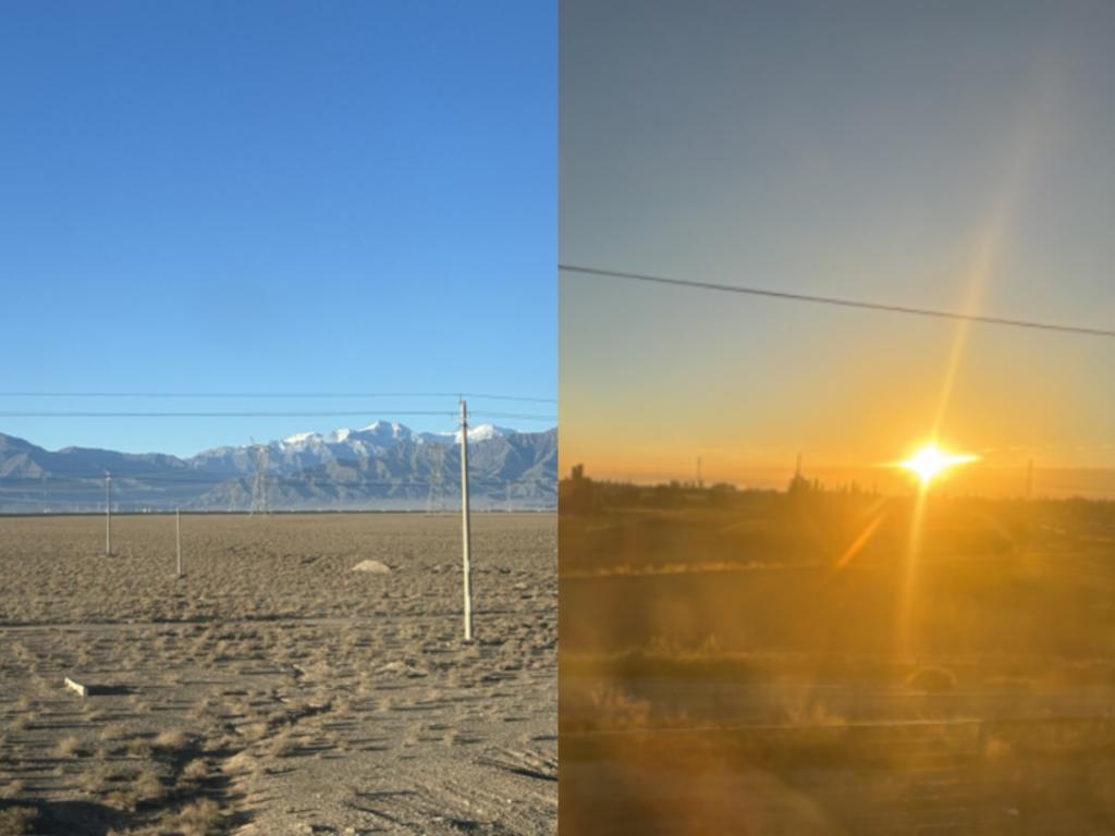 从济南至新疆,我体验了一段跨越山河的旅程。窗外的风景如画轴般徐徐展开,从生机勃勃的绿野过渡到巍峨的群山,最终抵达广袤无垠的沙漠,如同人生的多变轨迹。这些自然画卷激发了我对支教之旅的无限遐想,我想象着新疆的孩子们怀揣着对知识的渴望,期待我们的到来。此行,使我更加坚定了将知识和希望传递给他们的决心。(王文淑)