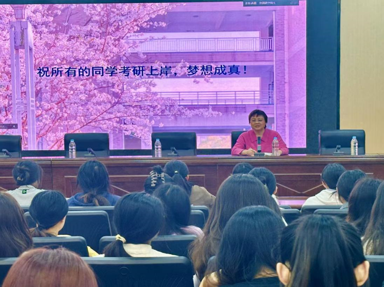 会议结束,宋秀葵表达对王刚院长的精彩讲座表示感谢,并结合学院2025届考研学生的预报名志愿统计进行分析。她指出,当今考研竞争日趋激烈,同学们要客观评估自身实力,综合考虑学校的教学质量、科研实力、就业前景等因素,理性填报院校专业,不要好高骛远,更不要扎堆填报。同时,勉励大家一定要坚定报考信心,保持良好心态,有的放矢做好考研复习准备,在最后的冲刺阶段好好拼搏,努力实现“一研为定”。