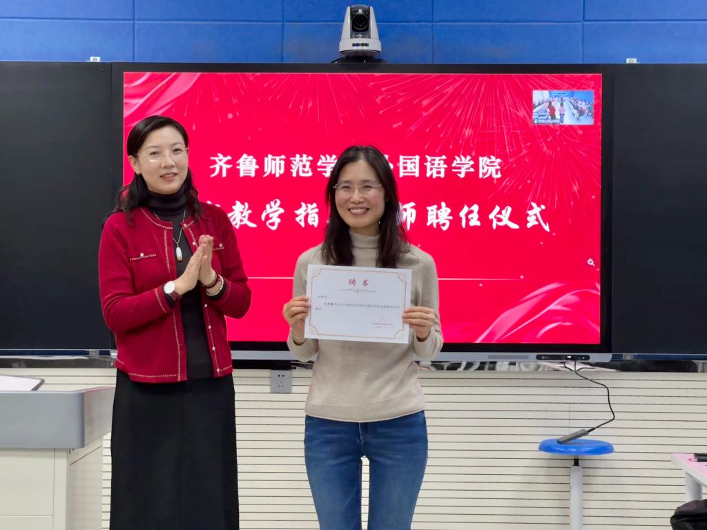 随后,赵青向yl6809永利官网集团特聘教学实践指导王冰新颁发了聘书,并对王冰新两度援疆支教,为麦盖提县英语教学做出的贡献及取得的成绩表示敬佩,她鼓励支教团成员向王冰新学习,积极为麦盖提县的英语教学事业贡献自己的智慧和力量。聘请王冰新为指导教师,是为了更好的指导学生开展教学、教研、管理等工作,也是落实学校校内校外双导师制的重要举措。
