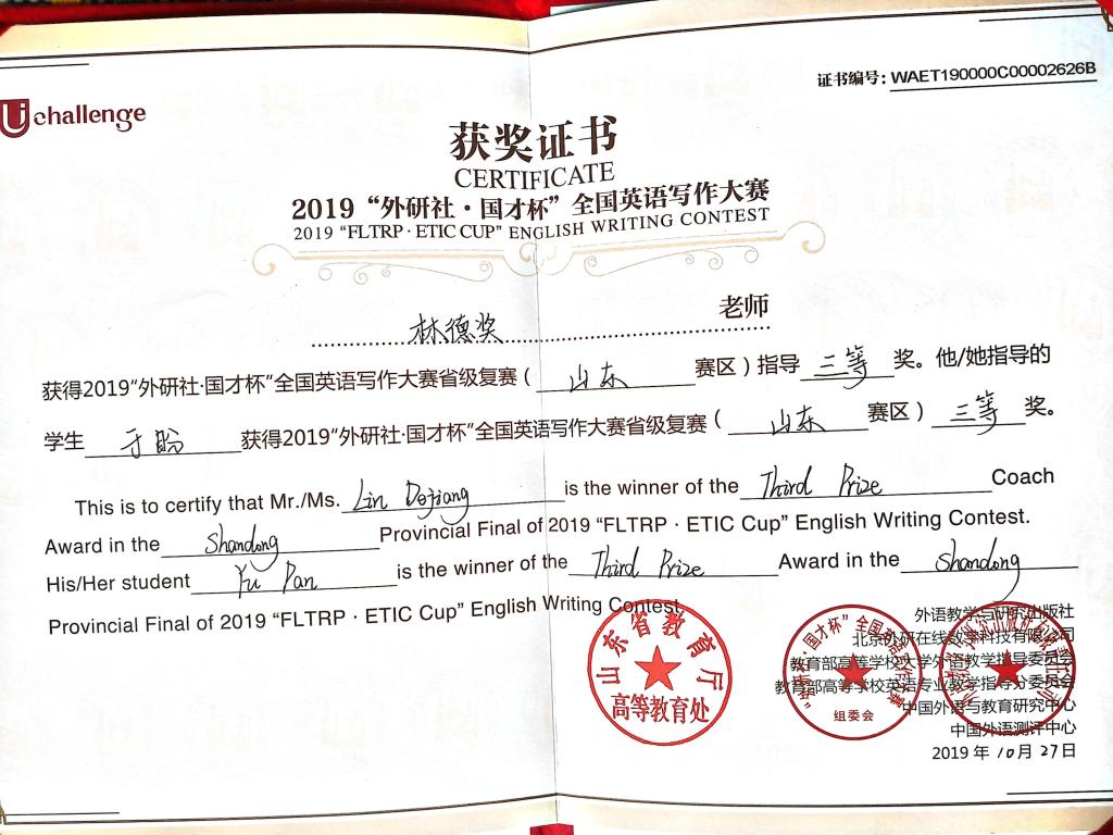 项目名称:2019“外研社 国才杯”全国英语写作大赛省级复赛