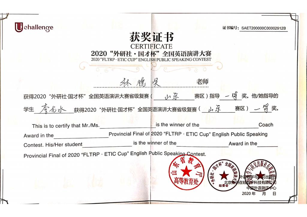 项目名称:2020“外研社 国才杯”全国英语演讲大赛省级复赛