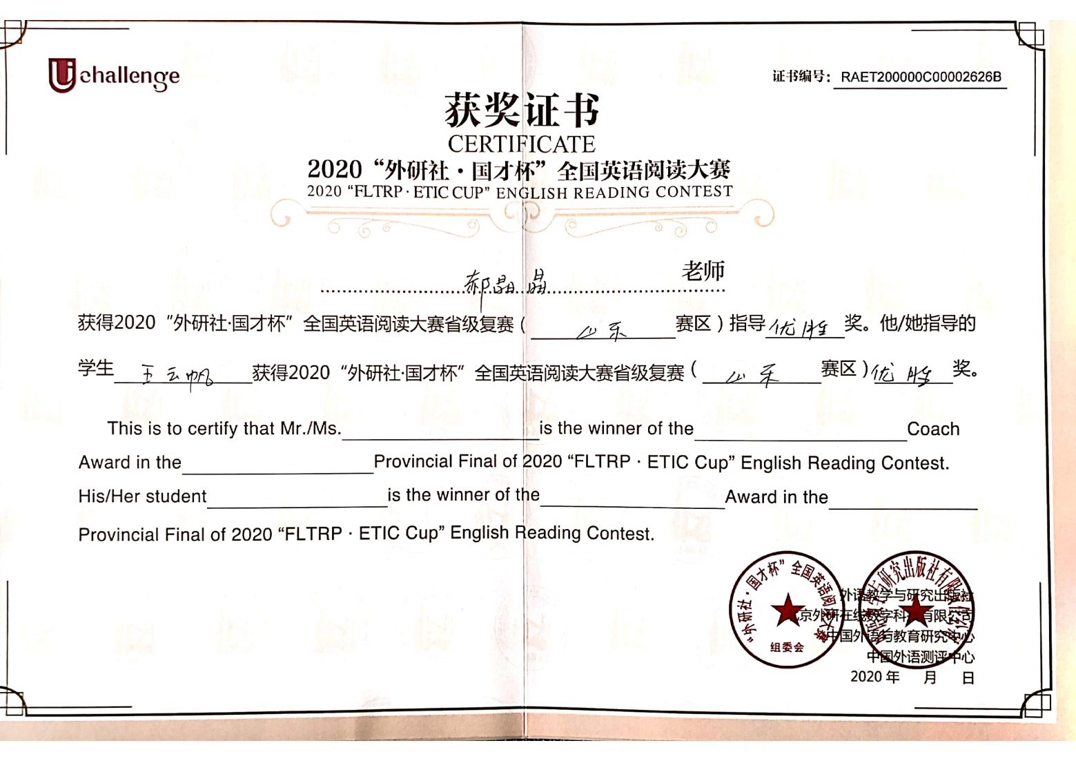 项目名称:2020“外研社 国才杯”全国英语阅读大赛省级复赛