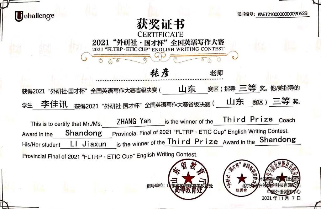 项目名称:2021“外研社·国才杯”全国英语写作大赛