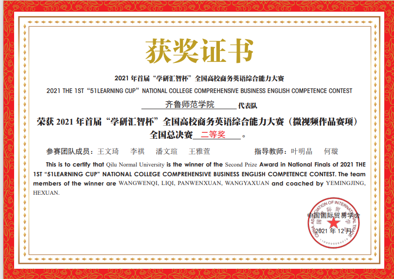 项目名称:2021年首届“学研汇智杯”全国高校商务英语综合能力大赛