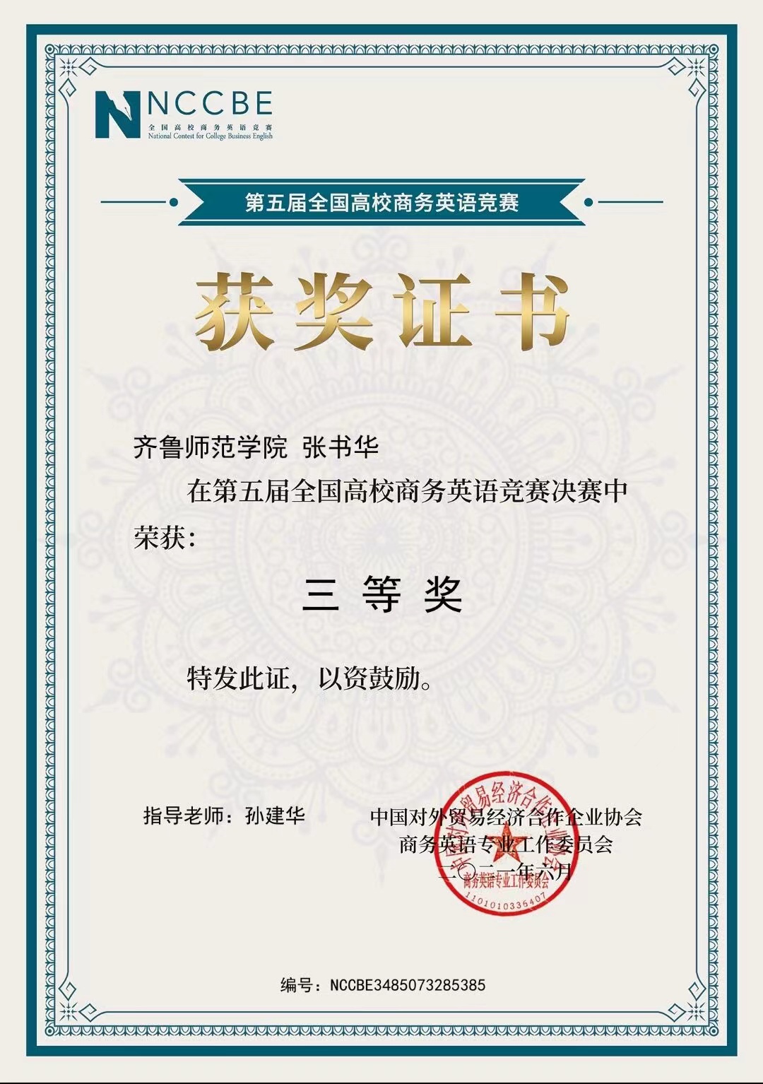 获得奖项:三等奖