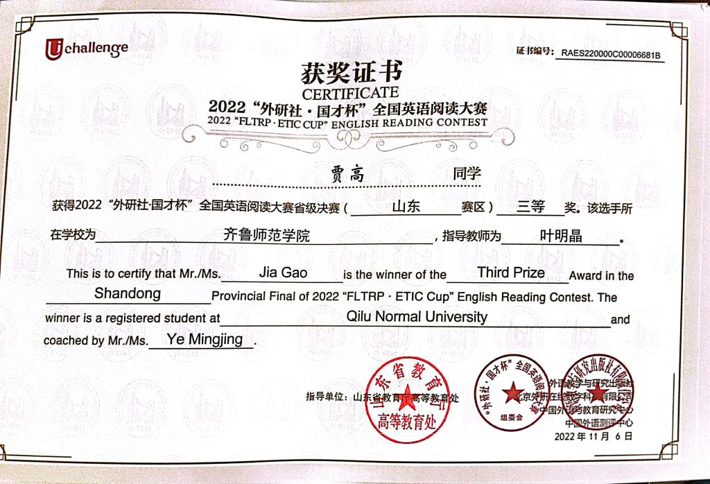 项目名称:2022外研社国才杯全国英语阅读大赛省级决赛