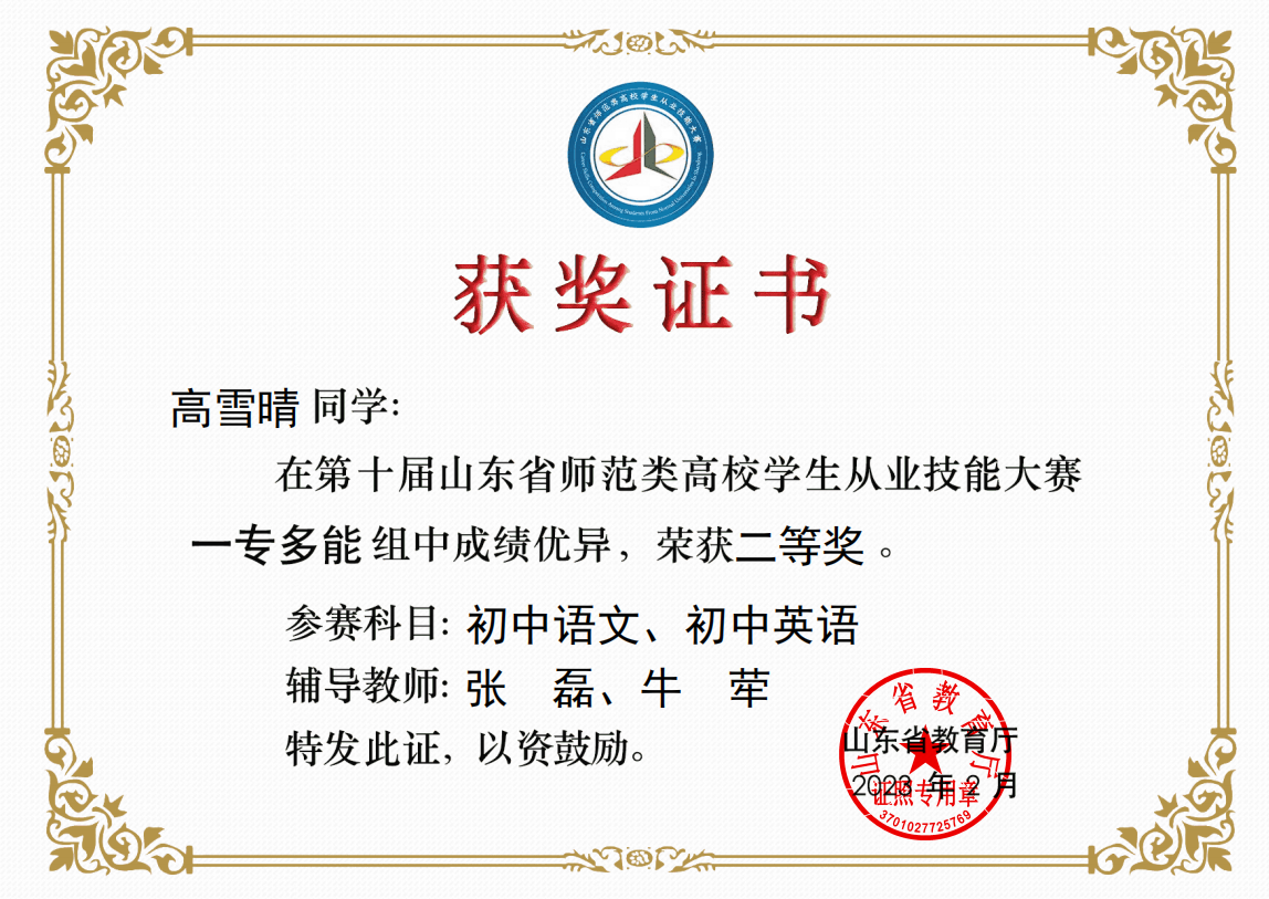 项目名称:第十届山东省师范类高校学生从业技能大赛初中语文、英语组