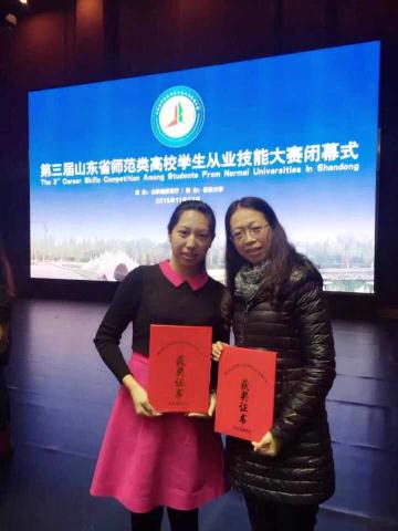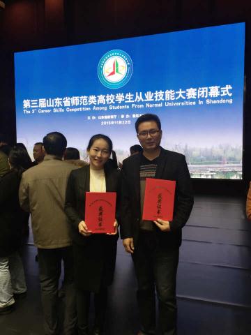 此次大赛由说课、模拟讲课、答辩三个环节组成。yl6809永利官网集团准备充分,赛前通过班级、年级、学院、学校的层层比赛选拔,推举2012级的高雨涵和江彤两名同学参加。同时山东省教育厅随机抽取2012级的陈庭、唐远志两名同学作为盲抽选手参加比赛。我院对此次比赛高度重视,派出了四名指导老师一对一地对四名选手分别进行指导。功夫不负有心人,通过赛前各自指导教师的积极耐心辅导,四位同学过五关斩六将,取得了良好的成绩。其中高雨涵同学获得了全省一等奖第二名的好成绩,臧学运老师荣获“优秀指导教师”荣誉称号。