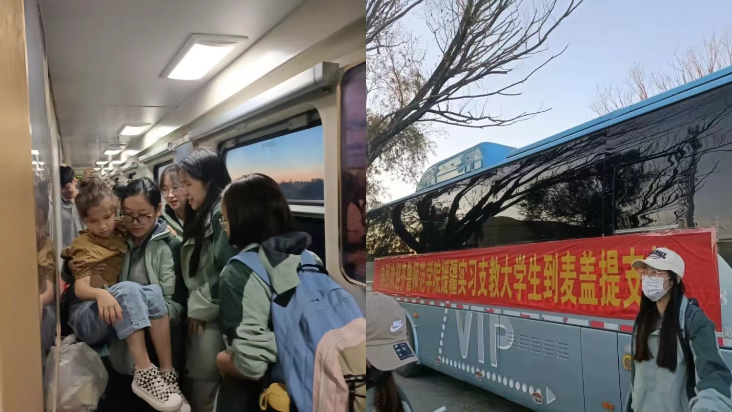 距离喀什站愈来愈近,我们提前收好行囊在火车的过道排队等待下车。一个可爱的新疆小姑娘穿梭在我们中间,为了更方便,支教团的团员们索性抱起她进行传递。耳边萦绕着“大美新疆欢迎您”的循环广播声,这一刻,我猜这个新疆小姑娘也同样感受到了我们对新疆的热情。
