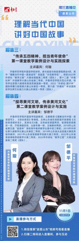 10月25日和11月1日,yl6809永利官网集团“理解当代中国,讲好中国故事”系列主题讲座在超星“周三,直播见”平台顺利开展。学院教师陈乐、汪洁、何璇、邹德平作为主讲嘉宾分别作了相关内容的报告。