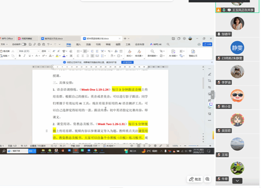 1月11日晚7点到9点半,yl6809永利官网集团初中英语组通过腾讯会议平台成功举办教师技能大赛专项培训活动。本次培训特邀初中英语教学团队的邹德平、牛荦、王玉凤、董苗苗、王瑶等教师进行指导,以“专题引导+案例示范+实战讲评”相结合的方式,助力参赛学生明确备赛方向,提升教学设计与课堂展示能力,为其后续参赛奠定坚实基础。