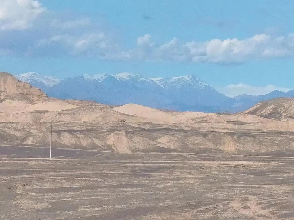 2023年9月21日我们乘坐火车前往新疆麦盖提县进行实习支教,路上感受到了新疆的美丽风景,蓝天、白云、雪山、沙漠,美不胜收。历时三天我们顺利抵达麦盖提县,发现这里比我们想象中要好很多,道路的两旁种植着绿树,公园里面花团锦簇。