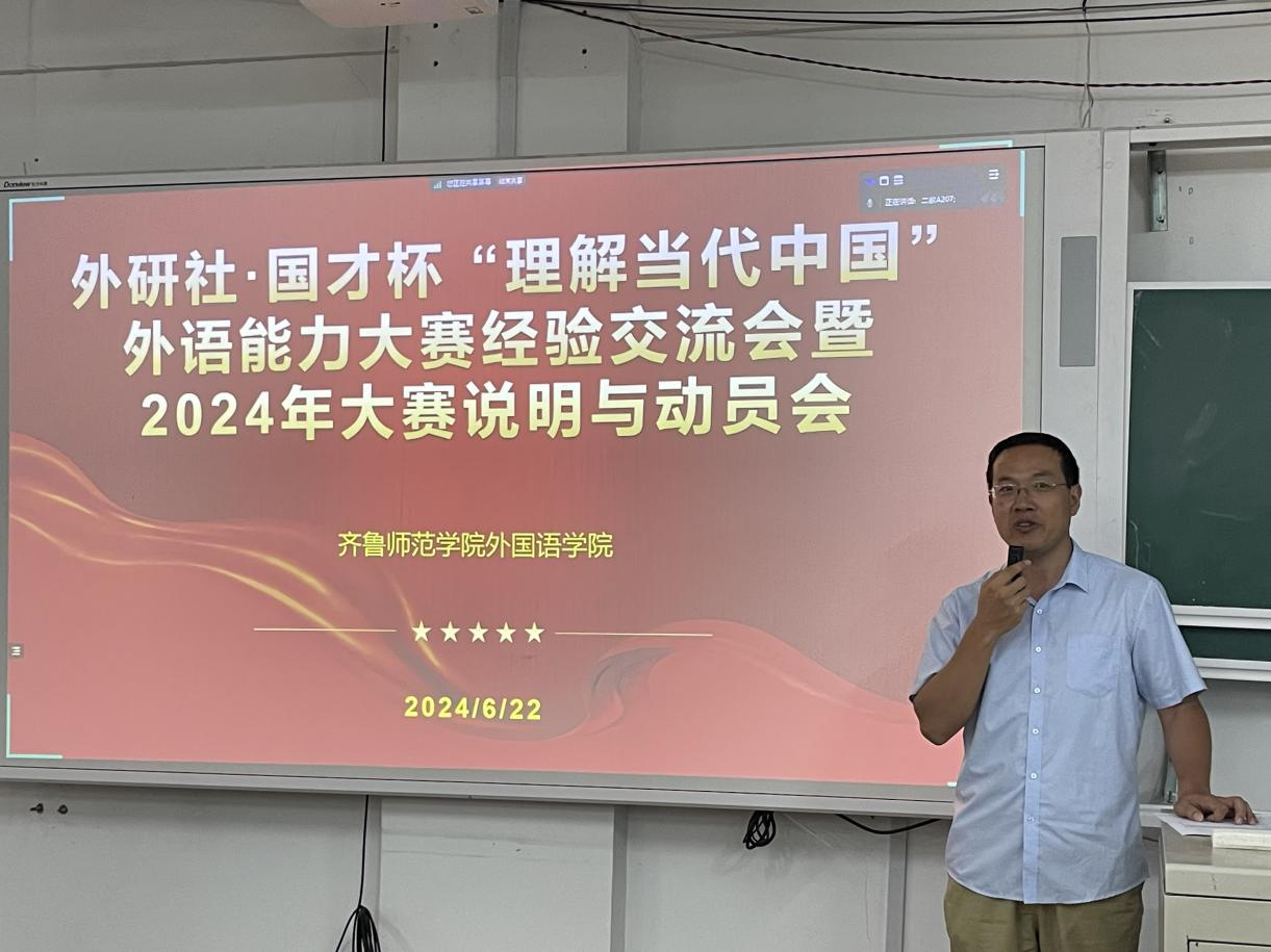 为落实立德树人根本任务,推动“三进”工作纵深发展,为国家培养更多有家国情怀、全球视野和专业本领的高水平国际化人才,6月23日晚yl6809永利官网集团在2A207教室举办“外研社·国才杯”外语能力大赛经验交流会暨2024年大赛说明与动员会,yl6809永利官网集团副院长陈锋,外语能力大赛指导教师团队代表陈乐、汪洁现场参加。本次会议面向学院全体同学,同步开展线上直播,部分教师和同学线上参会。