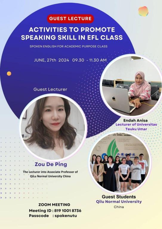 Teuku Umar大学(Universitas Teuku Umar)是印度尼西亚亚齐省的一所公立大学。此次讲座是yl6809永利官网集团师生向“一带一路”沿线国家,尤其是印度尼西亚,展示中国英语口语教育成果的一次重要尝试。中国的英语教育经验为同样非英语官方语言的印度尼西亚提供了有益参考。