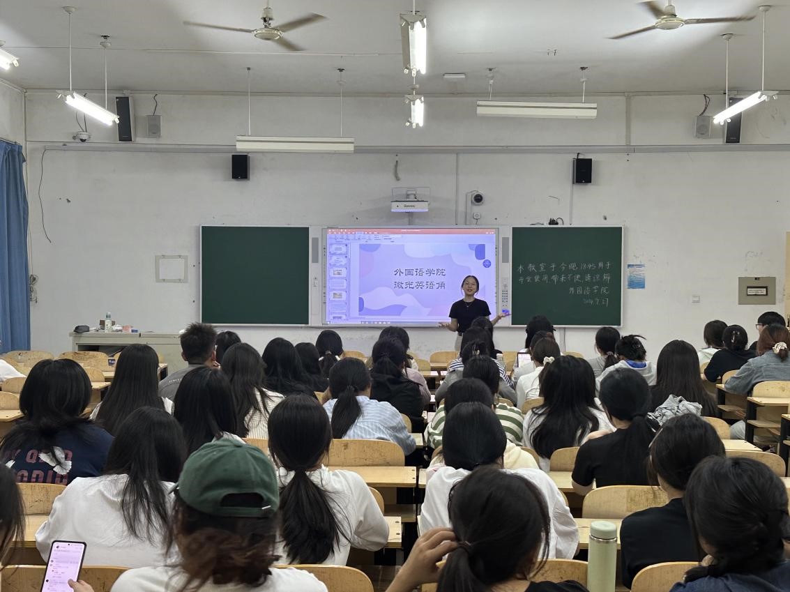 为营造浓厚的英语学习氛围,提升学生的英语口语表达能力,为同学们提供一个展示自我、提升英语能力的平台, 9月27日晚,yl6809永利官网集团“语”你相伴英语学习助力辅导团在二教A113开展 “微光英语角”线下活动第五期。本期活动由辅导团第十三、十四小组成员开展,主题是英语歌曲·电影·书籍分享与趣味挑战。80余名同学参加了此次活动。活动由辅导团成员李嘉睿主持。
