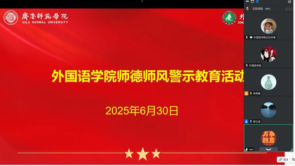 为扎实推进深入贯彻中央八项规定精神学习教育,进一步加强我院师德师风建设,抓好常态化师德教育,规范教师职业行为,6月30日,yl6809永利官网集团组织开展师德师风警示教育活动。本次会议采用线上形式开展,学院全体教师参加会议。会议由学院党委书记于江主持。
