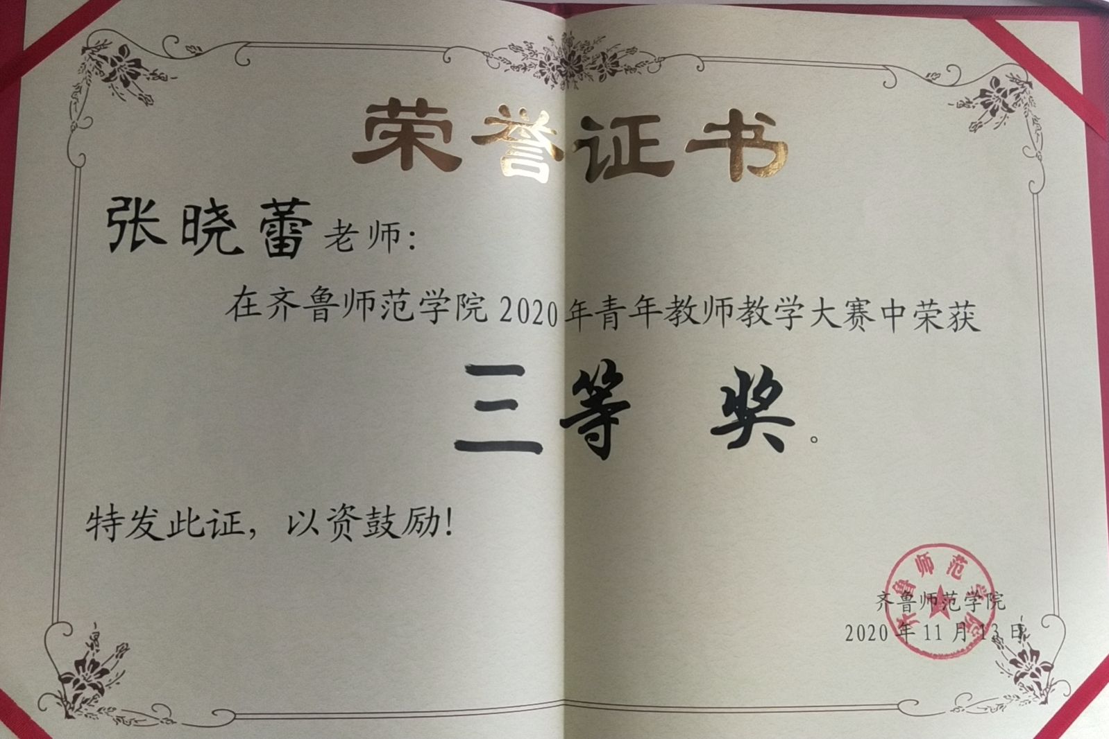 张晓蕾老师在yl6809永利集团2020年青年教师教学大赛中荣获三等奖。