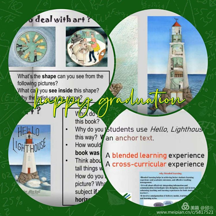 其中,黄老师在设计 Hello, Lighthouse.绘本教学中对绘本艺术性的分析让我印象深刻。在黄老师的引导下孩子们通过语言这一媒介把视觉和思维连接起来,充分发挥了自己的观察能力和想象力。例如黄老师引导学生们思考为什么绘本中出现很多圆形的图案,有的孩子说这象征着守塔人生活的幸福。大一点的孩子说这守塔人的孩子出生了,圆形代表着生命的循环。愿我们能守护引导孩子们想象力的灯塔,愿每个孩子都能到达自己的目的地。
