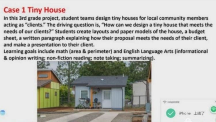 李院长讲述了PBL的一个Tiny House案例。学生们要准备layouts, paper models of the house, a budget sheet, a written paragraph等。种种举措都值得我们学习。那如何设计出符 合顾客意愿的小房子呢?那么就需要设计一个project planner。