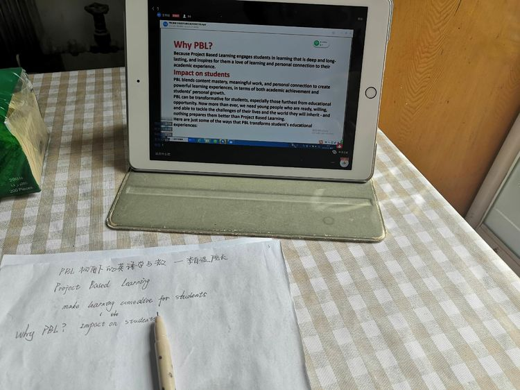 张振华老师听得认真,学得细致:今天学习的主题是PBL视角下的英语学与教,通过李百温院长的介绍,对PBL(Project Based Learning)有了一个比较充分的了解,PBL主要是以学生为中心,通过解决现实中的困难或者是比较复杂的问题,来提升学生的创造性,合作以及沟通能力等。李百温院长通过实际的案例,PBL在幼儿园,小学等学校中的应用,让我们对PBL有了充分的了解。在我们的课堂教学中,我们也要锻炼学生的实际应用能力,让学生不仅只是在课堂上用英语,也能在英语学习中提高自己的能力。黄老师带来了Whole Book Approach的讲座,对绘本教学进行了深入剖析,我会把今日所学用在以后的绘本教学中。