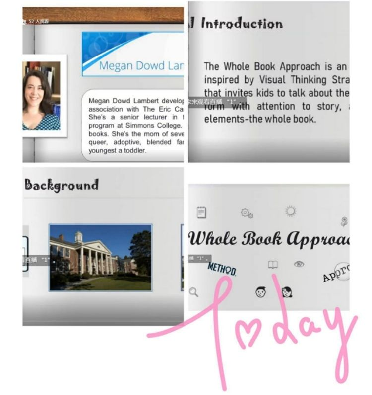 许孟小学秦荔老师:之前一直认为绘本教学十分简单,英语单词特别少,主要是图片的形式,领着学生们读一读,回答几个问题,背过文本,就完成任务了。那么通过今天黄老师的培训,真的让人对绘本教学刮目相看,原来能从一本简单绘本当中挖掘处那么多的问题,那么深的内涵,也让我们感受到了美国教学方法的不同。