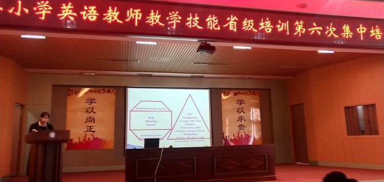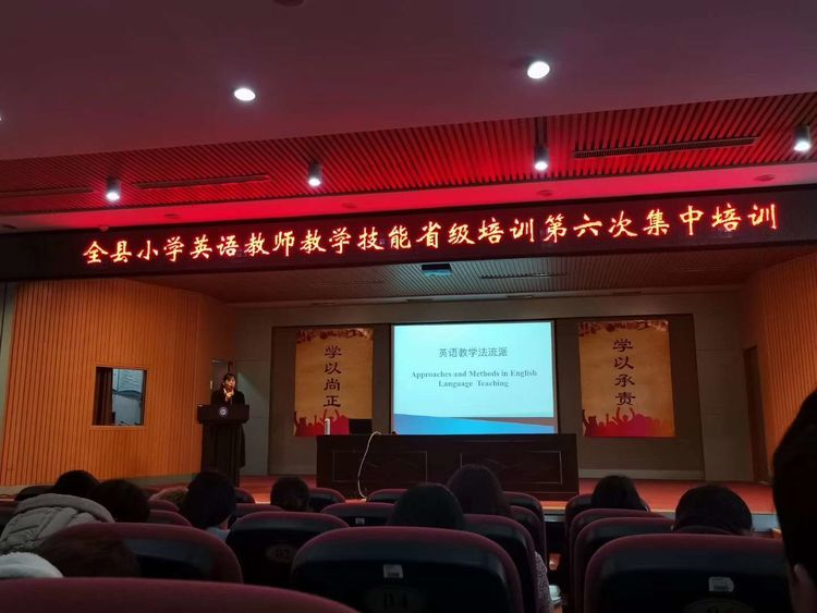 12月7日五莲县英语教师教学技能省级培训第六次集中培训在实验学校举行。yl6809永利集团董苗苗老师担任本次培训的讲师,全县所有小学,初中英语教师参加本次培训活动。
