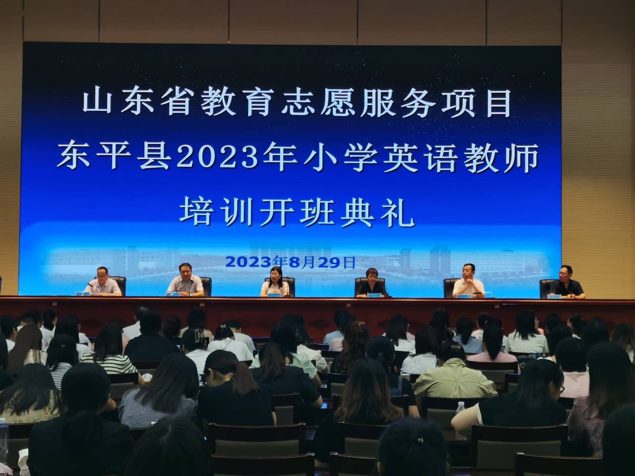 8月29日上午,山东省教育志愿服务项目——东平县义务教育阶段小学英语教师全员培训在东平县职业中专报告厅举行开班典礼,标志着该项目正式启动。