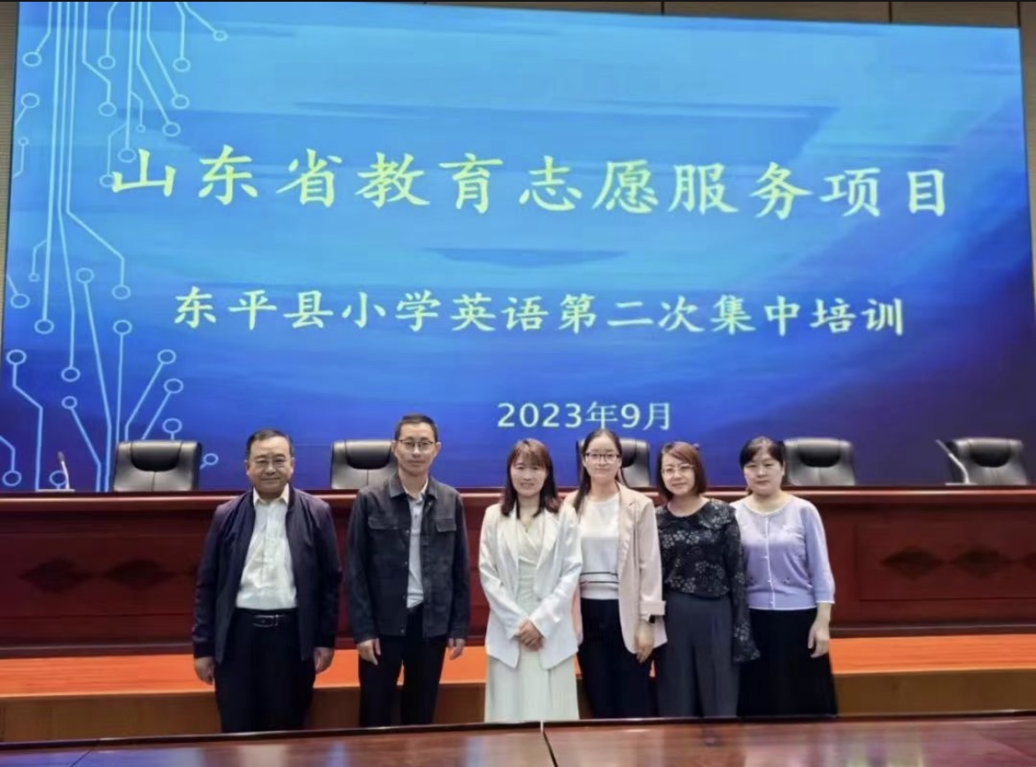 本次培训为期3天,是该项目继8月29日第一次培训后开展的第二次集中培训,我院副院长谢士金赴东平现场组织协调。参与本次培训的教师志愿者(教学名师)共11人,分别来自历下区、莱芜区。东平县小学英语教师共约200余人参加。