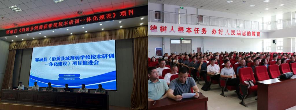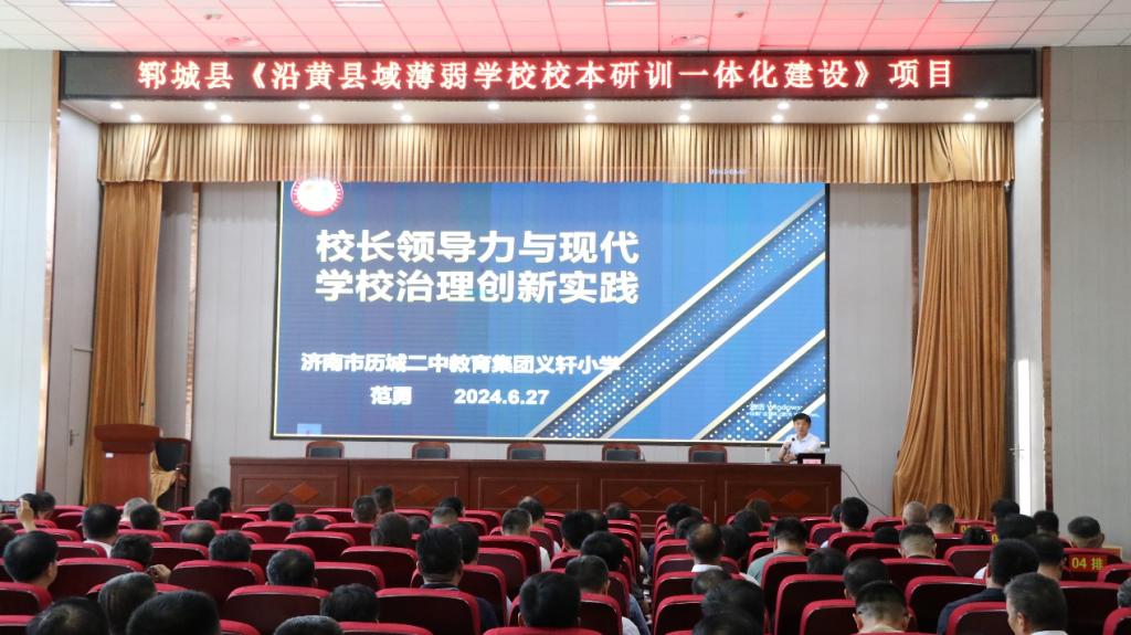 6月27日,yl6809永利集团和郓城县教体局联合举办“沿黄县域薄弱学校校本研训一体化建设”项目推进会。yl6809永利官网集团院长宋秀葵,yl6809永利官网集团副院长谢士金,教育部“国培计划”培训专家、yl6809永利官网集团教授梁承锋,教育部“国培计划”中小学领航工程名校长、济南市历城二中教育集团义轩小学党支部书记、校长范勇,郓城县教体局党组书记、局长王涛,全县各学校校长、业务校长参加会议。