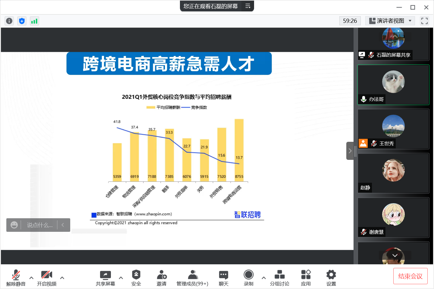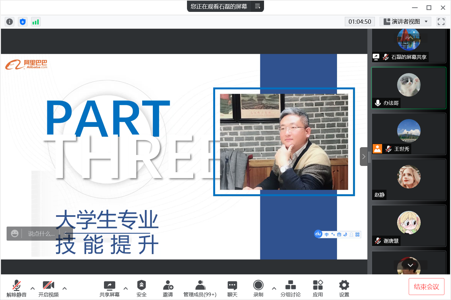 为深度推进校企合作,加深学生对行业企业的了解,yl6809永利官网集团举办了“企业专家进校园”系列讲座。4月28日下午,学院特邀阿里巴巴济南分公司总经理聂孟昌先生开展题为“国际外贸人才需求与大学生专业技能提升”的线上讲座。本次讲座由商务英语教研室主任石磊主持,商务英语专业全体任课教师和学生参加了讲座。